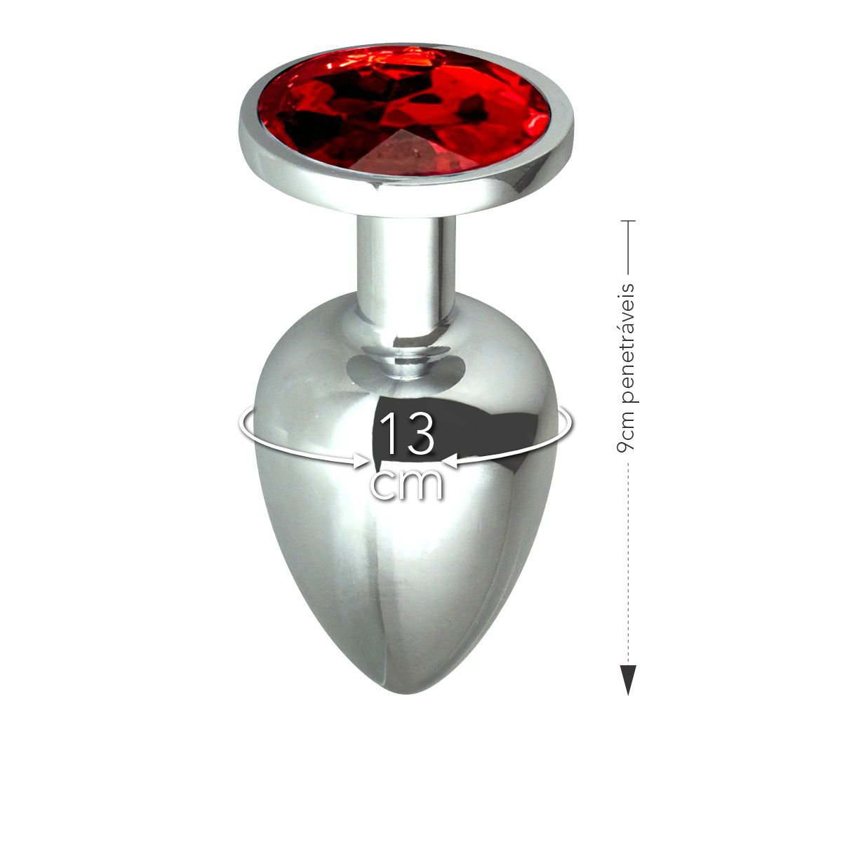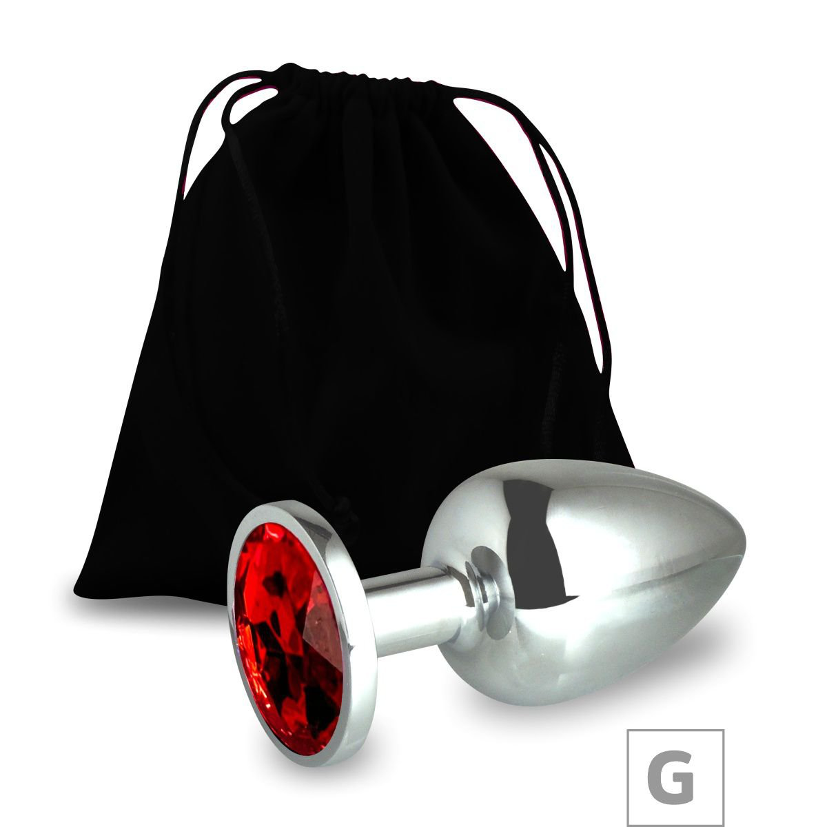 PLUG DE METAL G CROMADO COM STRASS 8CM SI (5847) – PEDRA VERMELHA